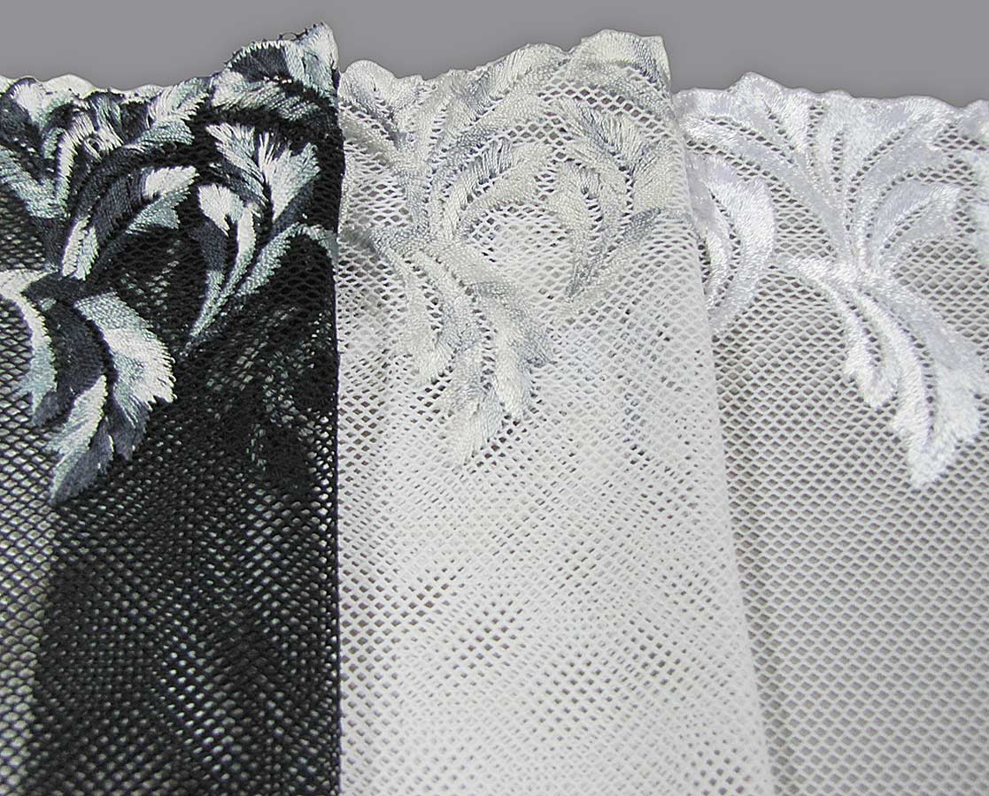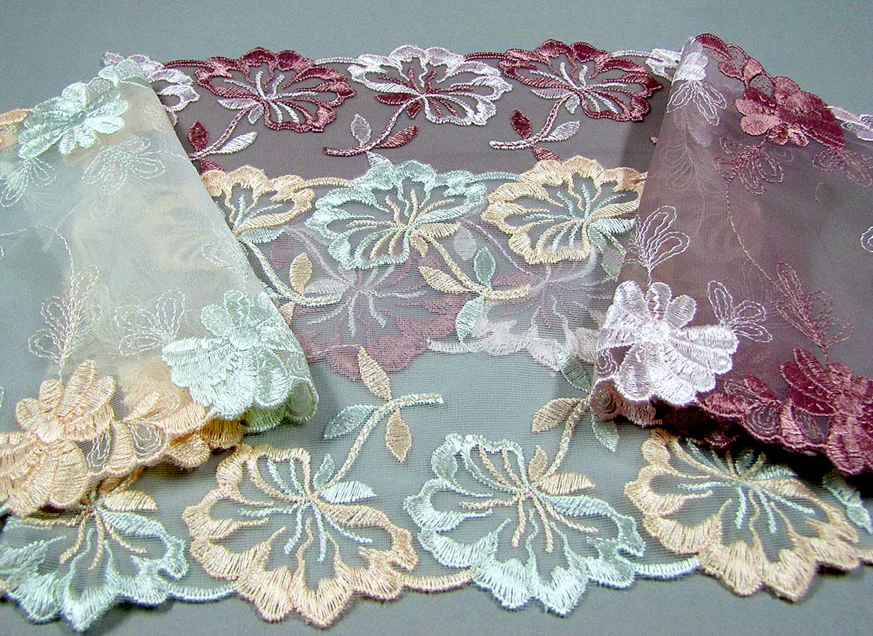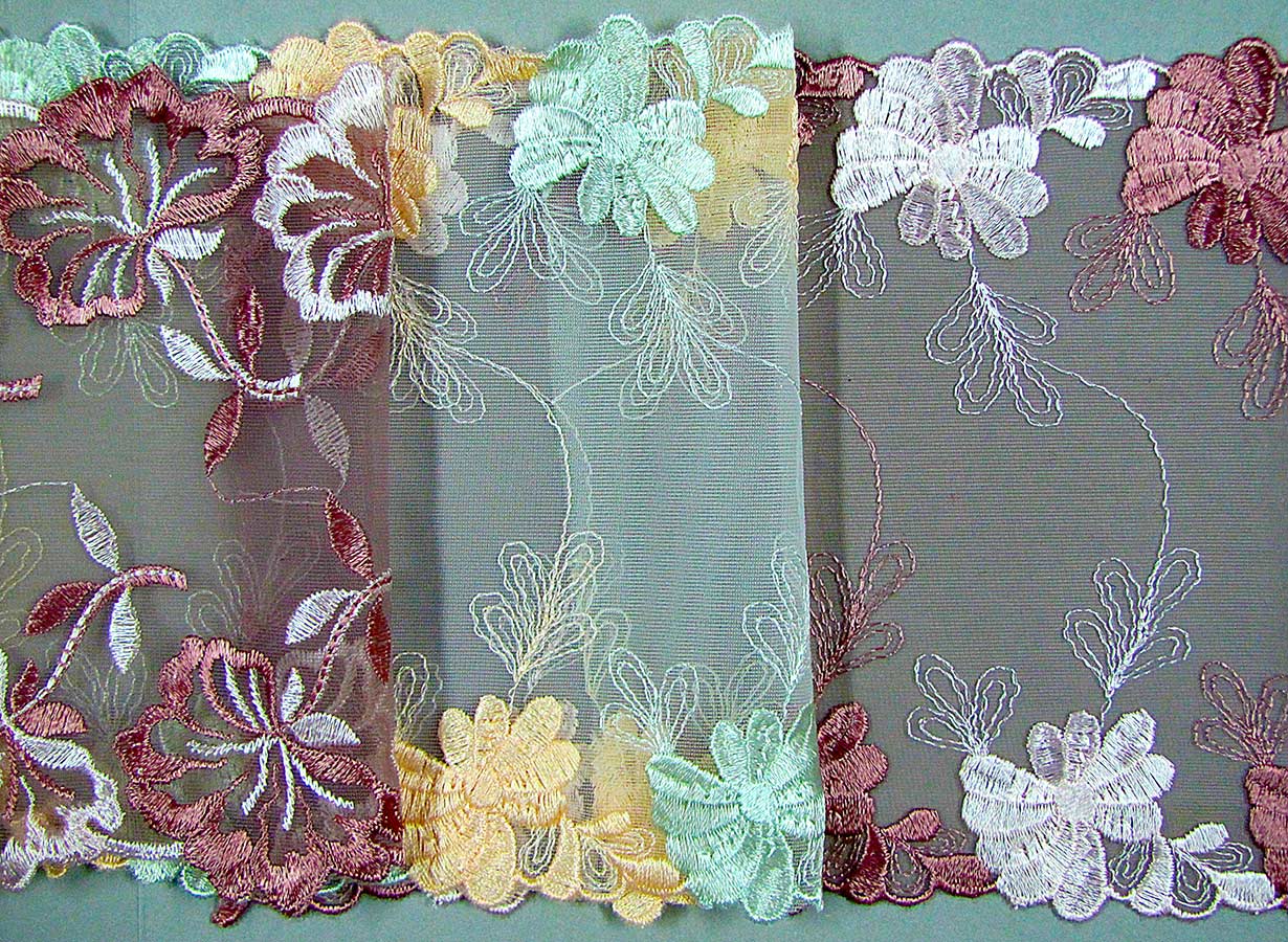 Elastic or rigid tulle embroidery, different colors, compositions