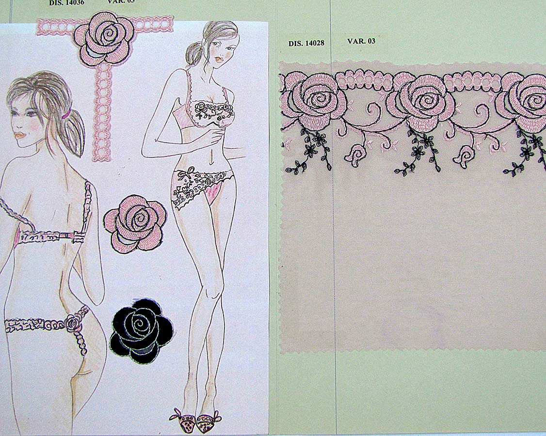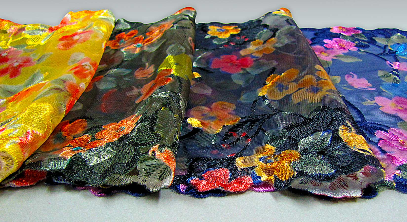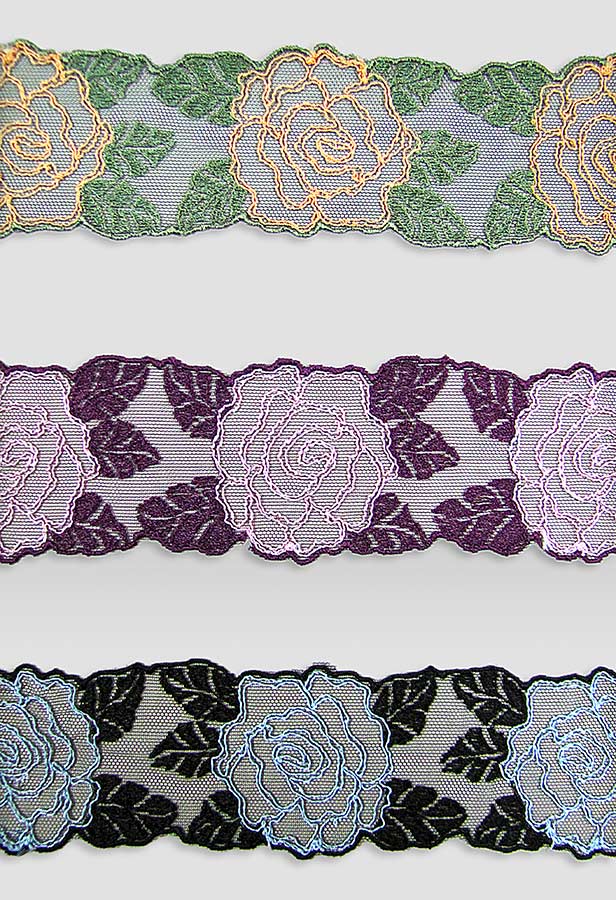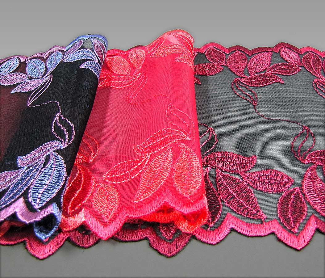 Elastic or rigid tulle embroidery, different colors, compositions